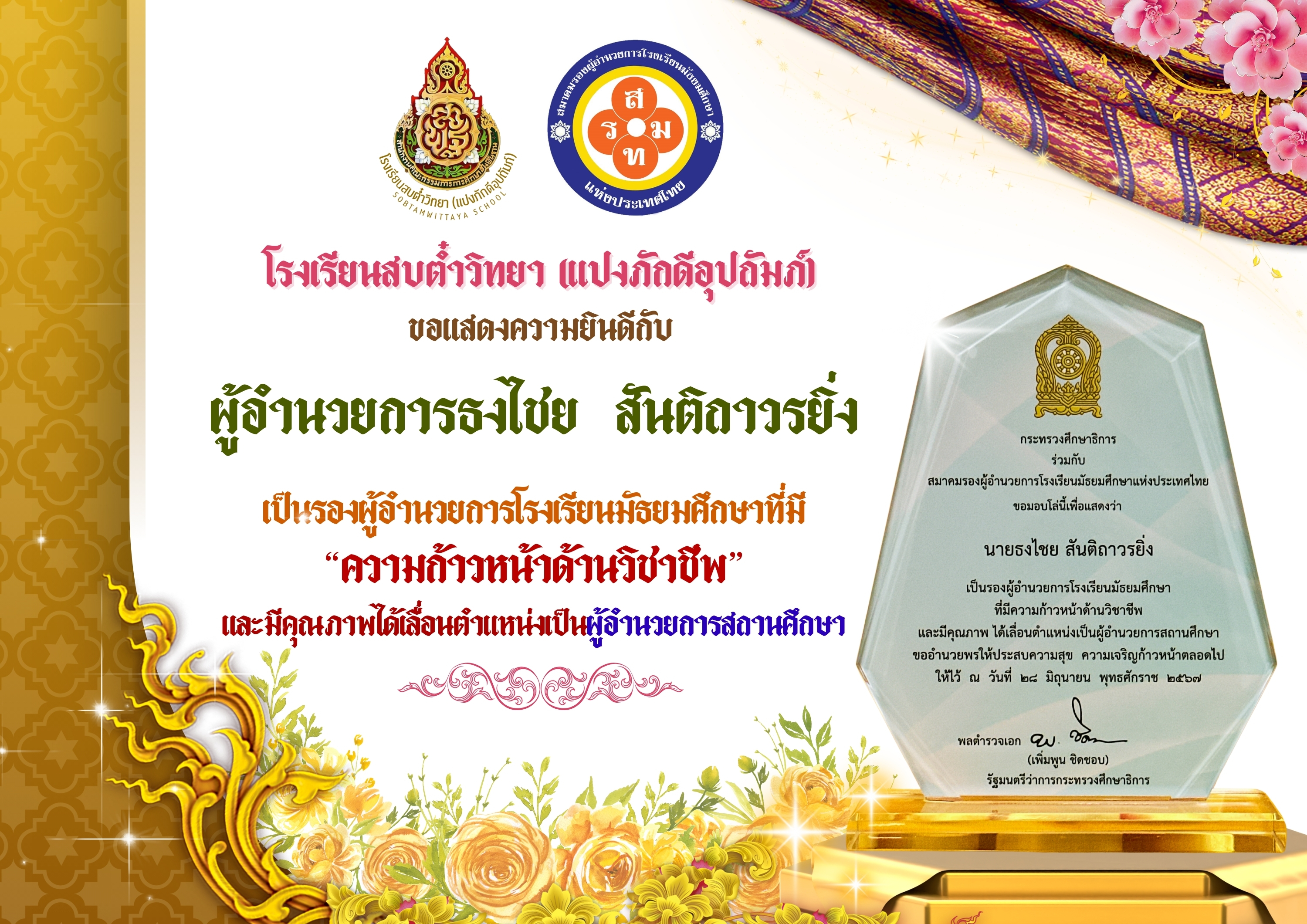 รางวัลรองผู้อำนวยการโรงเรียนมัธยมศึกษาที่มี “ความก้าวหน้าด้านวิชาชีพ” และมีคุณภาพได้เลื่อนตำแหน่งเป็นผู้อำนวยการสถานศึกษา