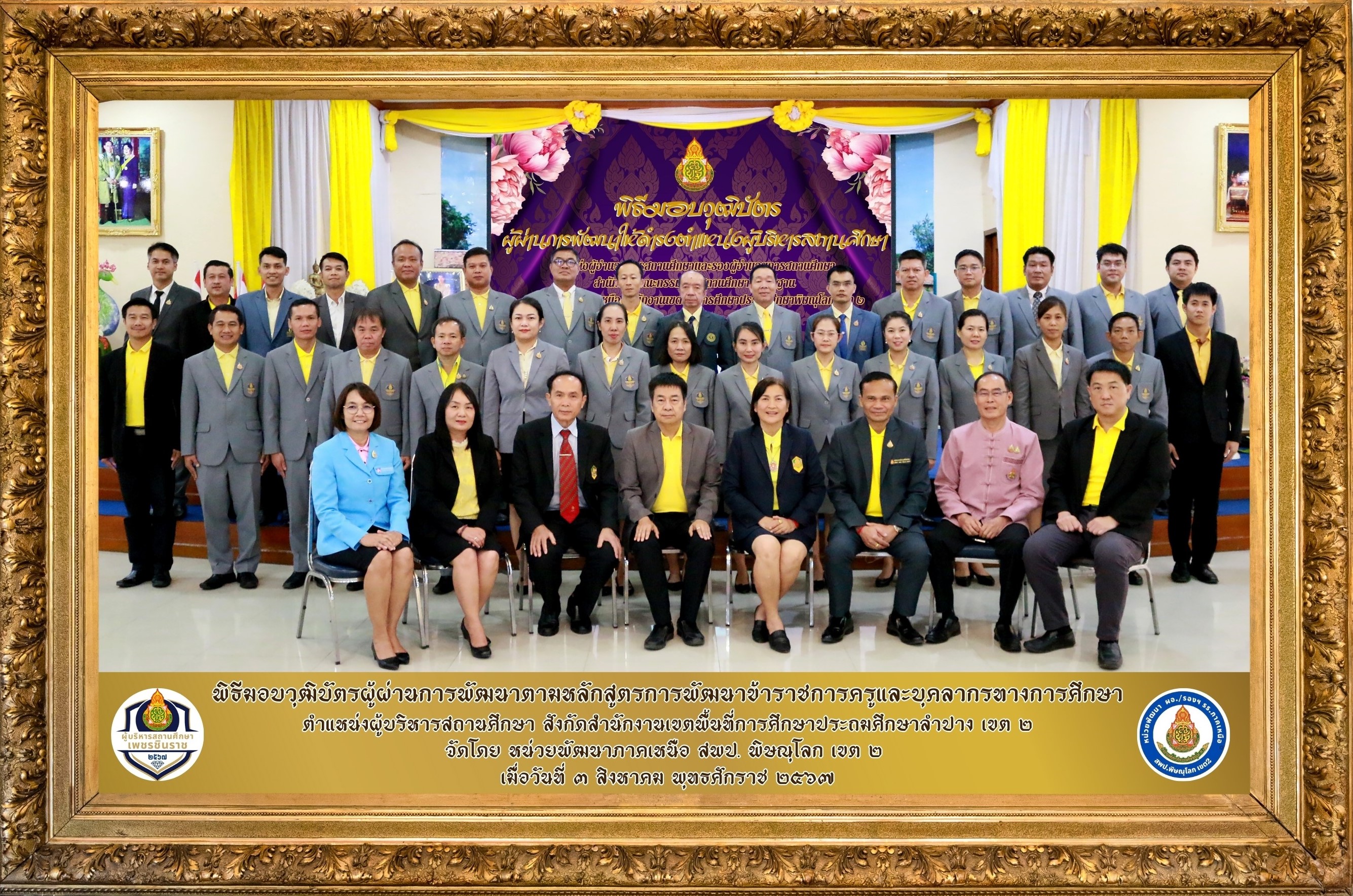 พิธีมอบวุฒิบัตรผู้ผ่านการพัฒนาตามหลักสูตรการพัฒนาข้าราชการครูและบุคลากรทางการศึกษาตำแหน่งผู้บริหารสถานศึกษา สังกัดสำนักงานเขตพื้นที่การศึกษาประถมศึกษาลำปาง เขต ๒จัดโดย หน่วยพัฒนาภาคเหนือ สพป. พิษณุโลก เขต ๒ เมื่อวันที่ ๓ สิงหาคม พุทธศักราช ๒๕๖๗