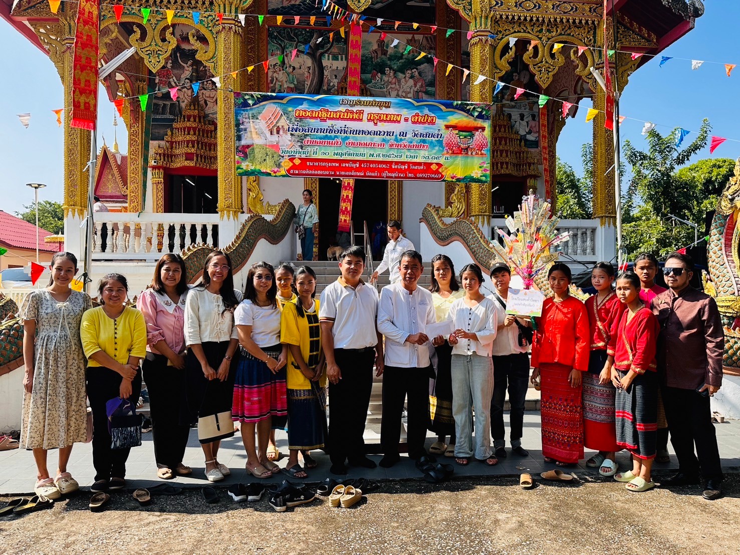 วันที่ 10 พฤศจิกายน 2567 นายธงไชย สันติถาวรยิ่ง ผู้อำนวยการโรงเรียนสบต๋ำวิทยา (แปงภักดีอุปถัมภ์) พร้อมด้วยคณะครูและบุคลากรทางการศึกษา นำนักเรียนเข้าร่วมการแสดงในงานทำบุญทอดกฐินสามัคคี กรุงเทพ - ลำปาง เพื่อสมทบซื้อที่ดินทอดถวาย ณ วัดสบต๋ำ ตำบลนาแก้ว อำเภอเกาะคา จังหวัดลำปาง ขออานิสงส์แห่งการทอดกฐินในครั้งนี้ ขอให้ทุกท่านจงเป็นผู้มีความมั่งคั่ง มีทรัพย์สินมาก ประสบความสำเร็จในหน้าที่การงาน เป็นผู้มีจิตใจแจ่มใส บริสุทธิ์ และผ่องใสอยู่เสมอ