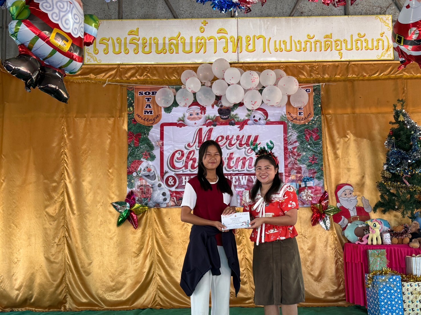 วันที่ 27 ธันวาคม 2567 โรงเรียนสบต๋ำวิทยา (แปงภักดีอุปถัมภ์) นำโดยนายธงไชย สันติถาวรยิ่ง ผู้อำนวยการโรงเรียน และคณะครู จัดกิจกรรมส่งท้ายปีเก่าต้อนรับปีใหม่และกิจกรรมส่งเสริมศักยภาพด้านภาษาต่างประเทศ ประจำปีการศึกษา 2567 ขึ้น โดยกิจกรรมการแข่งขันประกอบด้วย การแข่งขันระบายสี ระดับปฐมวัย การแข่งขันระบายสี ระดับ ป.1 - ป.3 การแข่งขันวาดภาพระบายสี ระดับ ป.4 - ป.6 การแข่งขันประดิษฐ์การ์ดอวยพร ระดับชั้น ม.1 - ม.3 การแสดงของนักเรียนแต่ละช่วงชั้น และกิจกรรมแลกของขวัญ เพื่อเปิดโอกาสให้นักเรียนทุกคนได้เรียนรู้วัฒนธรรมและความสนุกสนานรื่นเริง