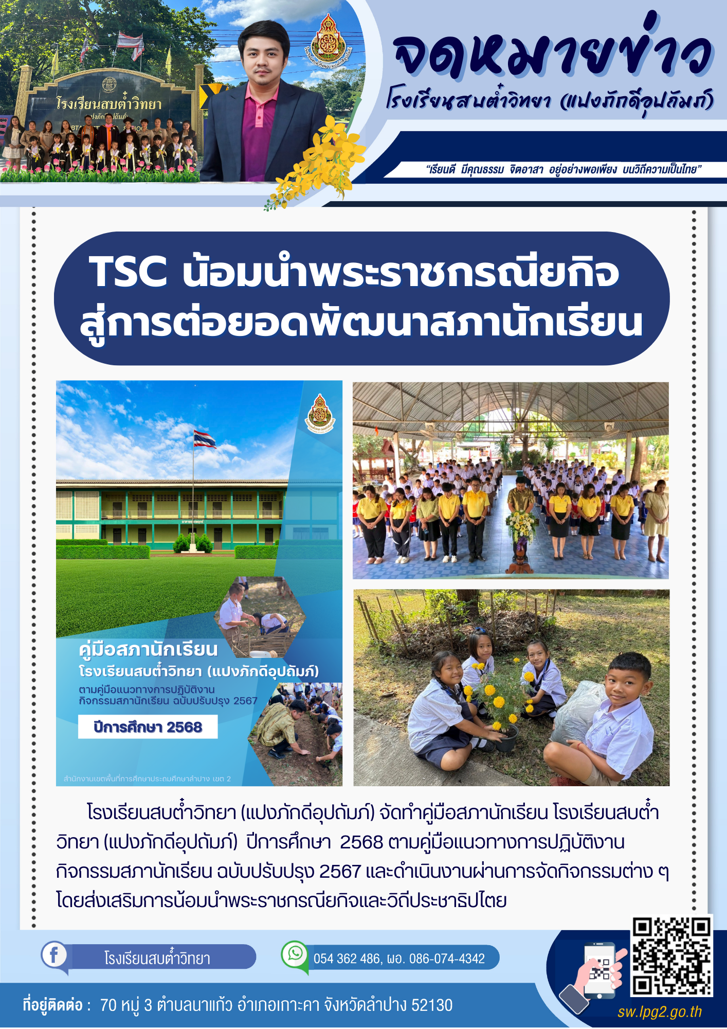 โรงเรียนสบต๋ำวิทยา (แปงภักดีอุปถัมภ์) จัดทำคู่มือสภานักเรียน โรงเรียนสบต๋ำวิทยา (แปงภักดีอุปถัมภ์) ปีการศึกษา 2568 ตามคู่มือแนวทางการปฏิบัติงานกิจกรรมสภานักเรียน ฉบับปรับปรุง 2567 และดำเนินงานผ่านการจัดกิจกรรมต่าง ๆ โดยส่งเสริมการน้อมนำพระราชกรณียกิจและวิถีประชาธิปไตย
