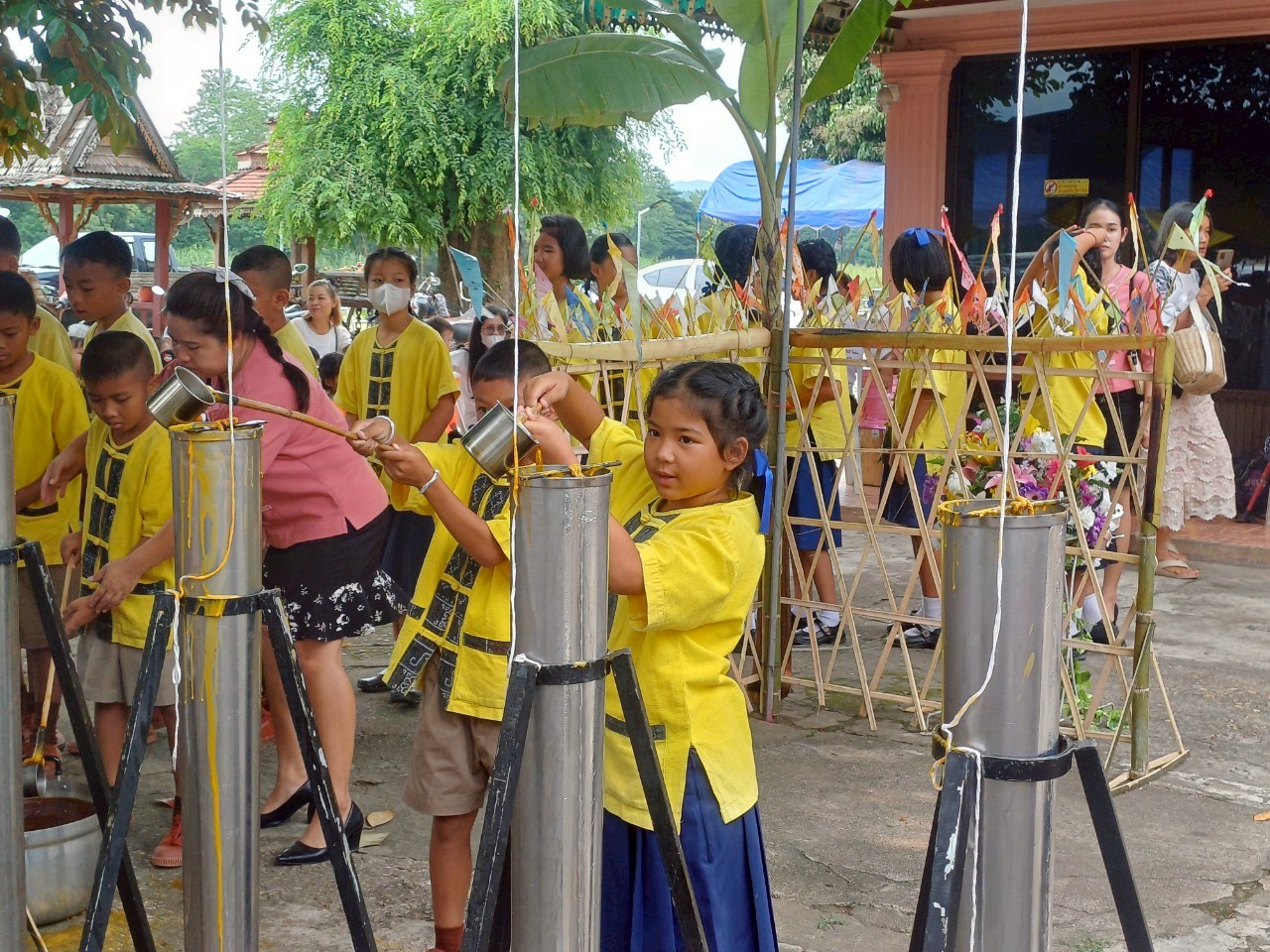 วันที่ 3 กรกฎาคม 2568 ผู้อำนวยการธงไชย สันติถาวรยิ่ง พร้อมด้วยนางสาวภัสร์วรา ขัดทาน และนางสาวปานฤทัย สารอินทร์ ครูโรงเรียนสบต๋ำวิทยา (แปงภักดีอุปถัมภ์) นำตัวแทนนักเรียน เข้าร่วมโครงการหล่อเทียนและถวายเทียนเข้าพรรษา ประจำปี 2568 จัดโดยเทศบาลตำบลนาแก้ว ณ วัดจอมปิงลุ่ม ต.นาแก้ว อ.เกาะคา จ.ลำปาง