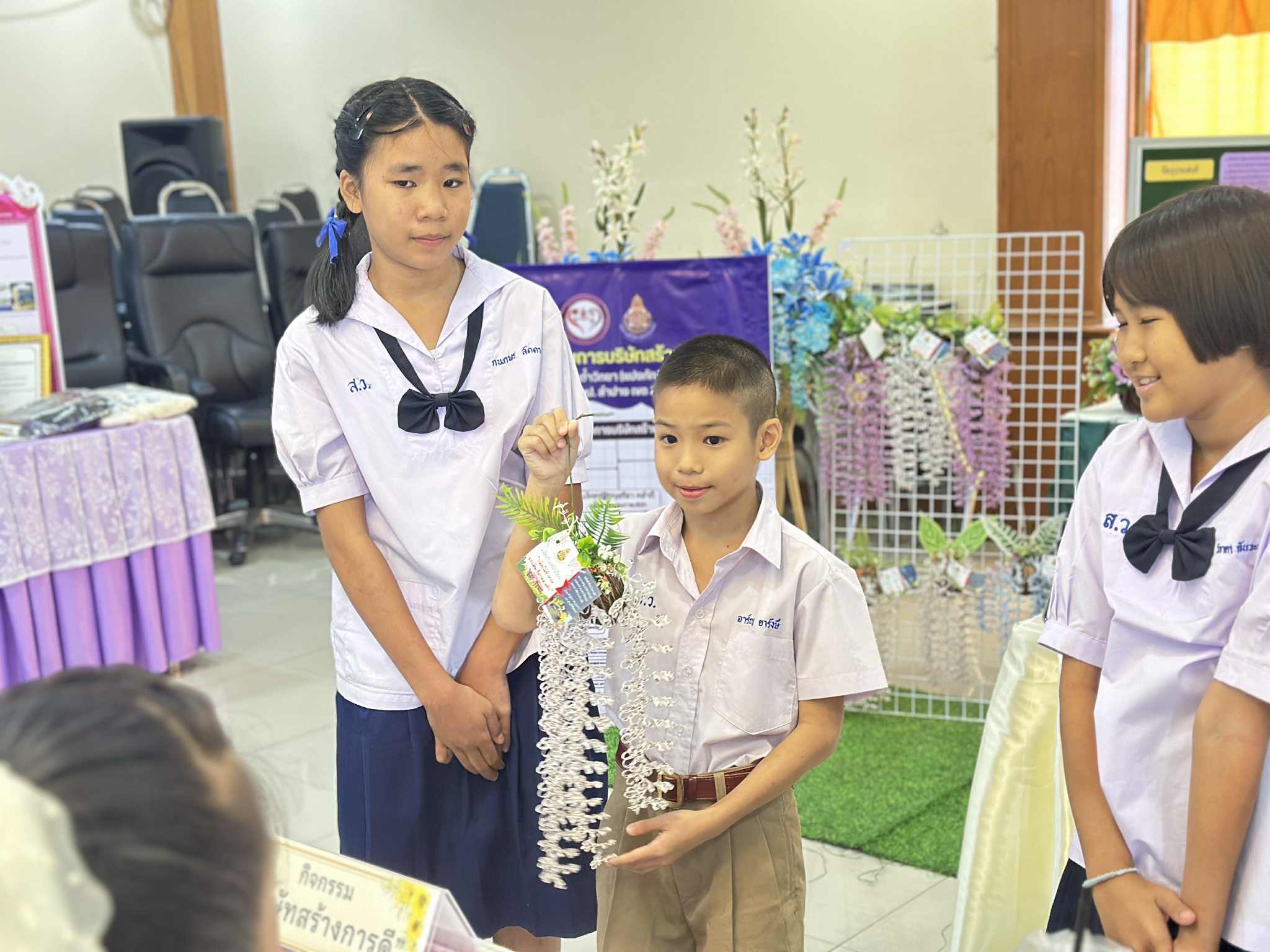 วันที่ 9 กรกฎาคม 2568 นางวรัชยา ทาชาติ และนางสาวภัสร์วรา ขัดทาน ครูโรงเรียนสบต๋ำวิทยา (แปงภักดดีอุปถัมภ์) นำนักเรียนเข้าร่วมนำเสนอผลงาน “กล้วยไม้ช้างกระจากเส้นเชือกพลาสติก” ในกิจกรรม "บริษัทสร้างการดี" โดยมีนางสรัญญา บุดดา ผอ.สพป.ลำปาง เขต 2 เป็นประธานในพิธีเปิด ณ หอประชุมลำปางหลวง สพป.ลำปาง เขต 2